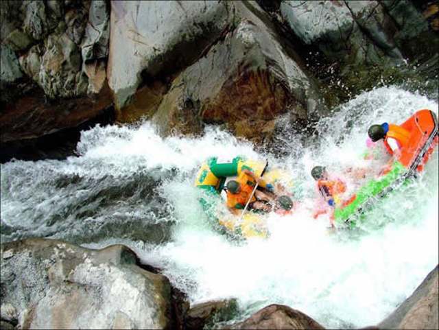一路上同事們歡聲笑語,到達(dá)武義牛頭山時(shí)已近晌午,2.5小時(shí)的車程早已讓同事們都饑腸轆轆。在享受完牛頭山休閑山莊的農(nóng)家土菜后,車子沿著蜿蜒崎嶇的山路向目的地神牛谷進(jìn)軍。繞過險(xiǎn)峻的地勢(shì),到達(dá)目的地時(shí),大家早已迫不及待的換下衣服拿好裝備,想體驗(yàn)“浙中第一漂”的驚險(xiǎn)與刺激。席間,老天的一場(chǎng)突如其來的大暴雨,特別的慰問了我們一直在崗位上兢兢業(yè)業(yè)的賽爾同事們。