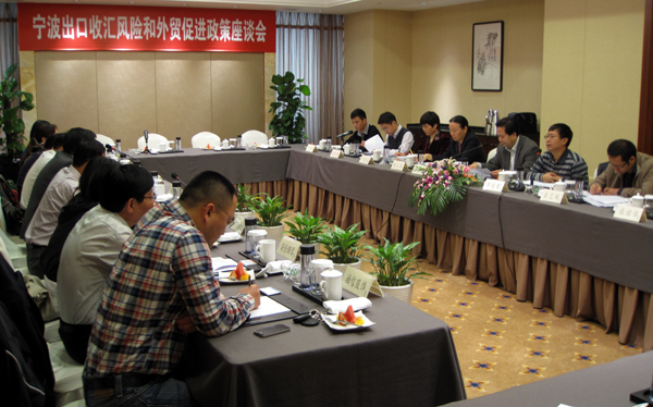 圖為寧波出口收匯風(fēng)險(xiǎn)和外貿(mào)促進(jìn)政策座談會(huì)現(xiàn)場(chǎng)