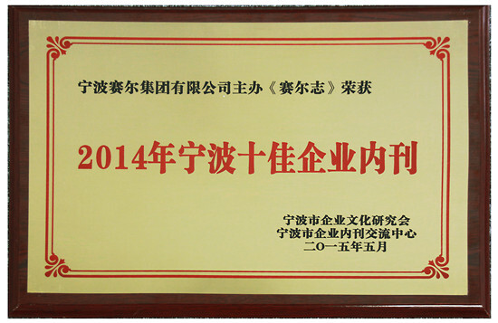 在張明華副市長、陸寧章會長等人共同啟動(dòng)“2015寧波市企業(yè)文化節(jié)”后,論壇舉行了頒獎(jiǎng)儀式。歐琳集團(tuán)、市公交總公司、雅迪機(jī)車、寧波機(jī)場等5家企業(yè)入選第三批“寧波市企業(yè)文化示范基地”,賽爾集團(tuán)與寧波交通工程建設(shè)、陸龍控股、浙江造船、圍海集團(tuán)等10家企業(yè)共同入選“2014年寧波市企業(yè)文化建設(shè)先進(jìn)單位”,我集團(tuán)主辦的季刊《賽爾志》、華茂集團(tuán)主辦的《華貿(mào)報(bào)》、博洋集團(tuán)主辦的《博洋報(bào)》等10份刊物榮獲“2014年寧波十佳企業(yè)內(nèi)刊”。