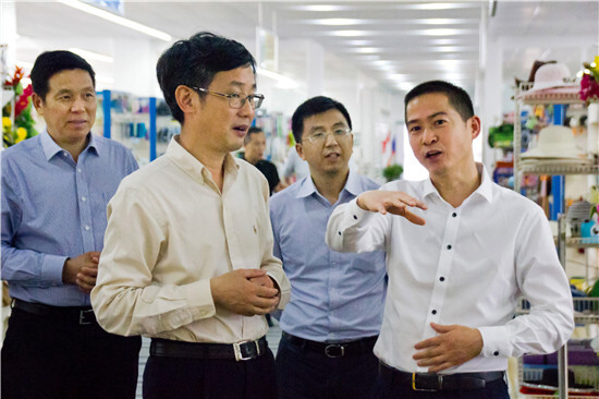 王副市長(zhǎng)等首先參觀了我集團(tuán)產(chǎn)品展示中心。看到如此大空間、多樣化的產(chǎn)品展示廳,王副市長(zhǎng)高興地說(shuō):“你們這是在自辦廣交會(huì)了”。王副市長(zhǎng)步入各個(gè)系列產(chǎn)品展區(qū),詳細(xì)詢問(wèn)產(chǎn)品種類(lèi)、供貨來(lái)源地、外商類(lèi)型及采購(gòu)方式、貨物包裝配送等情況,徐總一一作了解答,王副市長(zhǎng)對(duì)我集團(tuán)針對(duì)國(guó)外連鎖超市客戶著力打造的一站式出口產(chǎn)品采購(gòu)配送模式表示贊賞。