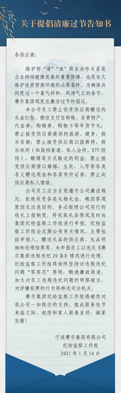 賽爾集團關于提倡清廉過節告知書
