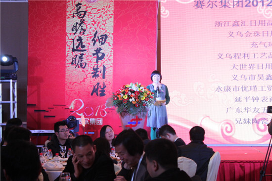賽爾網訊 12月26日,集團在義烏幸福胡國際會議中心隆重舉辦了“攜手并進,共贏發展”2012度供應商答謝會。本次活動共邀請到了190位供應商朋友與嘉賓,同時到場的還有義烏市中國銀行、浦發銀行的代表以及對今晚答謝會進行跟蹤報道的記者朋友!此次活動也得到了寧波地區和義烏地區兩個地區供應商朋友們的積極支持和熱烈響應。