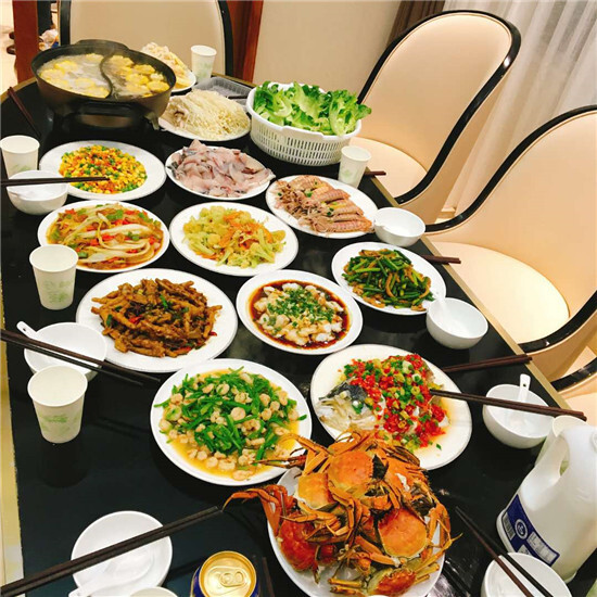 慵懶的午后,姑娘們?cè)趧e墅內(nèi)的卡拉OK館盡情展示歌喉,隨行的三個(gè)小朋友俏皮地在一旁玩起了躲貓貓,廚房?jī)?nèi)賢惠的人兒們說(shuō)說(shuō)笑笑的在為晚上的大餐做準(zhǔn)備工作,誠(chéng)摯的笑容縈繞在每個(gè)人的笑臉上。美好的時(shí)光總是讓人在不經(jīng)意間度過(guò),不一會(huì)兒就到了本次活動(dòng)最重要的環(huán)節(jié),那就是解決民生大計(jì)!鴻運(yùn)當(dāng)頭,吉祥三寶,瑪瑙翡翠,海上絲綢之路,五星紅旗,六月黃,春之歌。。。。。。伴隨著一個(gè)個(gè)美好的寓意,一道道精致的色味俱佳的菜肴,在燈光下泛出點(diǎn)點(diǎn)油光,撲鼻的香味陣陣襲來(lái),不禁令人食指大動(dòng),忍不住大快朵頤。要問(wèn)餐桌禮儀,菇?jīng)鰝冊(cè)缫哑炔患按叵麦纾硌绾蟪L(zhǎng)時(shí)間的消食時(shí)刻更是對(duì)光盤(pán)行動(dòng)的完美續(xù)集。