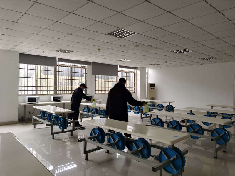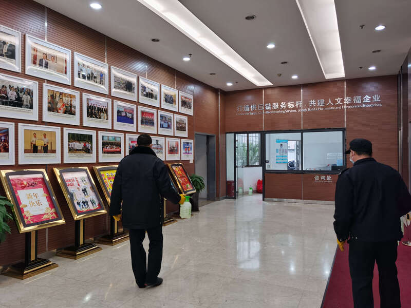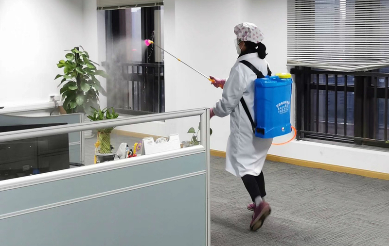 一日兩次的消毒液噴灑,保持安全有序的辦公環境。