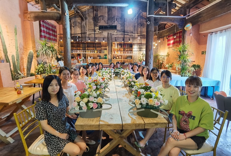 七月里甚是難得的涼爽一日,大優訊財務部來到有“田園鄉夢”之稱的李祖村,領略了傳統染色工藝扎染以及手工布鞋的獨特魅力,品嘗了傳統制糖工藝梨膏糖,在這里感受時光歲月賦予它的韻味。然后開始了此次團建的重頭戲——插花。在插花過程中,大家耐心地修剪、配色,互相幫助指導。活動結束,大家都擁有了屬于自己性格特色的花籃,有熱情奔放派,有沉靜內斂派,也有自然生長派……