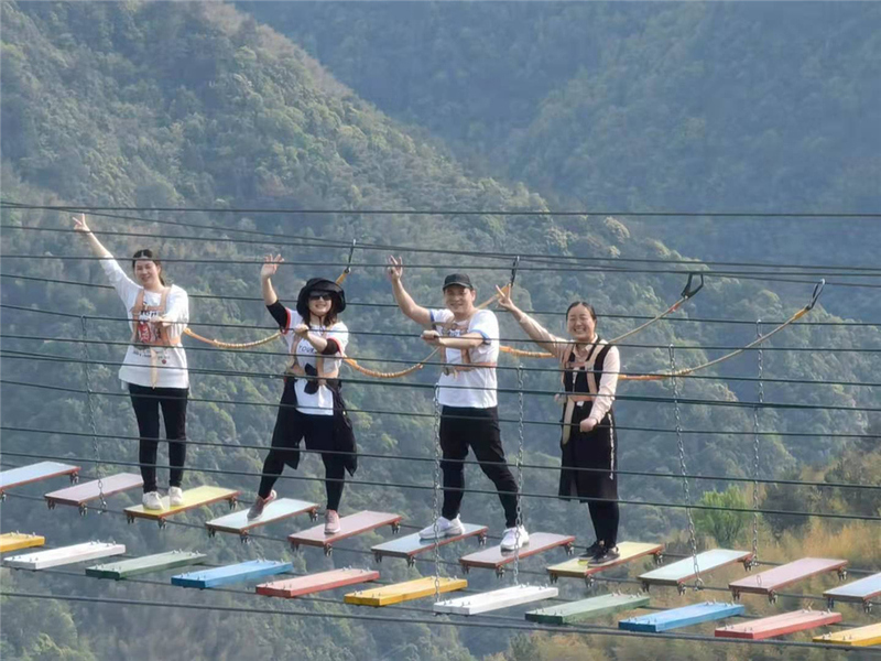 云霧繚繞的盤山路,香甜可口農(nóng)家飯菜,一決高下的乒乓球?qū)Q,拄著拐杖爬山的波哥,都是此行的焦點(diǎn)。讓人印象最為深刻的是通過高空筏道的集體任務(wù),在大家的共同努力和互相幫助下,大家順利完成任務(wù)。這個(gè)團(tuán)隊(duì)項(xiàng)目讓我們真正體會(huì)到了有些事情單憑個(gè)人力量是根本無法完成的,只有發(fā)揮團(tuán)隊(duì)合作精神,挖掘隊(duì)內(nèi)每個(gè)人的潛力,才能讓團(tuán)隊(duì)力量最大化。雖然戶外拓展的時(shí)間較短,但從這些拓展項(xiàng)目中,我們學(xué)會(huì)了如何挑戰(zhàn)自我、激發(fā)潛能,如何有效分工、團(tuán)隊(duì)協(xié)作,如何進(jìn)行時(shí)間管理。