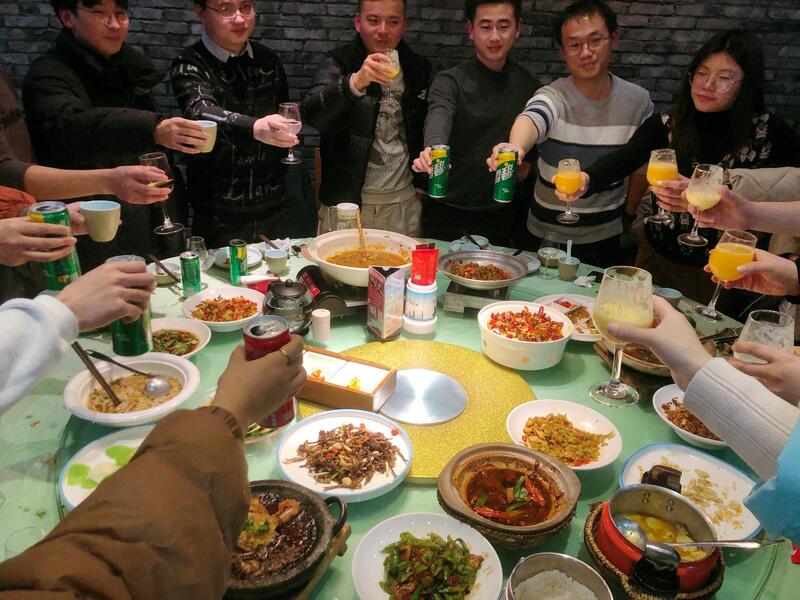 會議結(jié)束后,所有人員進(jìn)行了歡樂聚餐。大家因?yàn)橄嗤膼酆镁奂谝黄穑o狹小的社交圈注入了新的活力。雖然在一家公司,但是彼此都不熟悉,公司提供了社團(tuán)這樣的組織模式,增進(jìn)了子公司同事之間的友誼。希望義烏羽林軍社團(tuán)能為健康賽爾添磚加瓦,增加賽爾大家庭的幸福感!